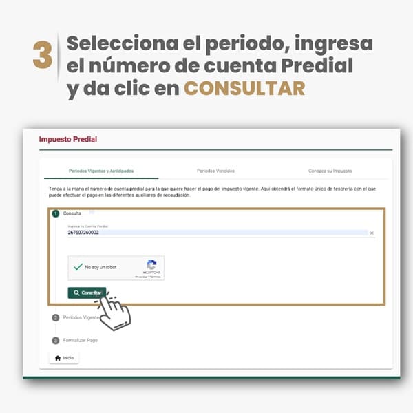 - Ingresar tu número de cuenta catastral o el número de predial, que se encuentra en tu recibo anterior o en la documentación de tu propiedad.